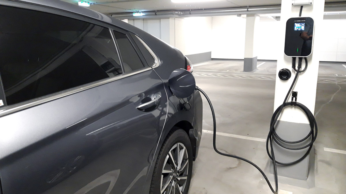 Ein anderer Kunde hat die Besen Wallbox in der Tiefgarage bei einem Wohnhaus installiert (siehe Fotos). Als Montageort hat sich die Säule direkt neben dem Stellplatz angeboten. Das Kabel kann praktisch über den darunter montierten Kabelhalter gewickelt werden und dank Steckerhalter hat auch der Typ 2-Stecker seinen fixen Platz. Die Zuleitung erfolgt über einen kompakten Verteilerschrank (Kleinverteiler), der einen entsprechenden Fehlerstrom-Schutzschalter (FI) beherbergt. Der Kunde ist mit der Besen Wallbox sehr zufrieden. Einziger Verbesserungsvorschlag: eine deutschsprachige Version der Smartphone-App.