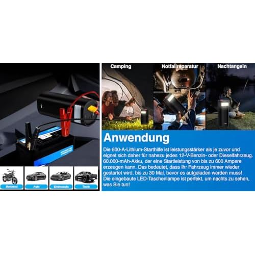 Darüber hinaus kann eine Starthilfe-Powerbank im Alltag als universelle Energiequelle dienen: zum Laden von Smartphones, Tablets, Notebooks oder zur Beleuchtung bei Pannen. Manche Modelle verfügen sogar über integrierte Luftkompressoren, SOS-Leuchten oder USB-Schnellladefunktionen, was sie zu echten Multifunktionshelfern macht.