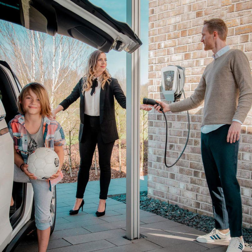Wer schnell und bequem laden möchte, ist mit der Home Eco Wallbox von Heidelberg genau richtig. Die intuitiv bedienbare Heimladestation bietet sich für alle E-Auto und Plugin-Hybrid-Besitzer an, die ihr Fahrzeug im Außenbereich, also beispielsweise im Carport oder in der Garage laden möchten. Die Ladeleistung kann bei der Installation zwischen 1,4 kW und 11 kW eingestellt werden. Mit der integrierten DC-Fehlerstromerkennung reduzieren sich die Elektroinstallationskosten auf ein Minimum. Die Montage ist einfach und kann von jeder Elektrofachkraft vorgenommen werden.