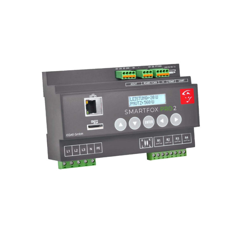 - Lieferumfang: SMARTFOX PRO 2 Solar-Energiemanagementsystem, Micro SD-Karte inkl. Adapter, Stromwandler 80 A