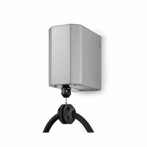 Die Kabelhalterung sollte neben der Wallbox montiert werden (ca. 40 bis 50 cm). Die Montagehöhe sollte jedenfalls oberhalb der Wallbox liegen und ca. 1,8 m betragen. Die Kabelhalterung funktioniert aber auch auf geringerer Höhe. Die Halterung muss nicht gleichzeitig mit der Wallbox montiert werden, sondern lässt sich jederzeit problemlos nachrüsten. Die Montage kann entweder an der Wand oder an der Decke erfolgen. Für die Montage an der Decke wird außerdem ein eigenes Set für die Deckenmontage mit Montagewinkel angeboten.